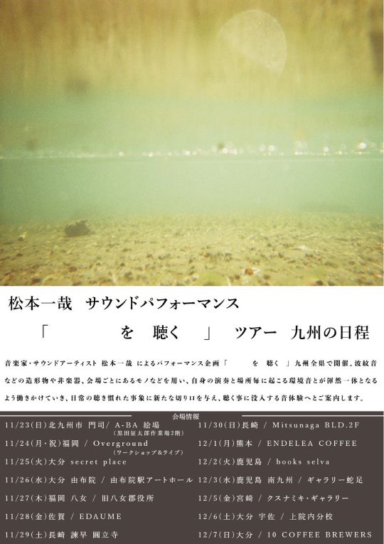 サウンドアーティストの松本一哉氏が、11月23日(日)の福岡県北九州市を皮切りに、九州7県14拠点で怒涛の14日間ライブツアーをスタートします。