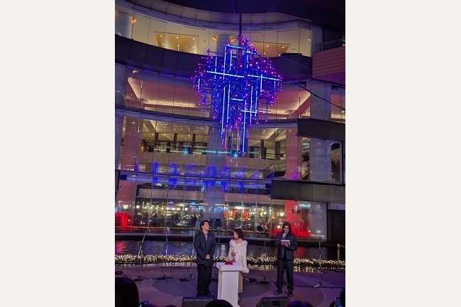 キャナルシティ博多(福岡市博多区)では、「キャナルイルミネーション2025」を2026年2月28日(土)まで実施中。11月13日の点灯式では、劇団四季ミュージカル「オペラ座の怪人」福岡公演に出演中の俳優2人やゴスペルグループ「THE SOULMATICS」の歌が披露されました。冬の訪れを告げる点灯式の様子をリポートします。