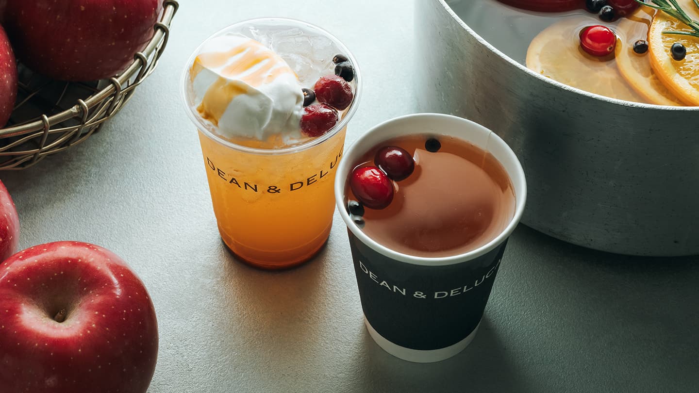同時期には、旬のりんごにオレンジとクランベリーを加え、スパイスと一緒に煮込んだ「アップルサイダー」も登場。フレッシュな果実、芳醇なスパイス、みずみずしいショウガの風味が口いっぱいに広がり、さっぱりとした後味が特徴。ホットでもアイスでも楽しめる4つのバリエーションから選べます。