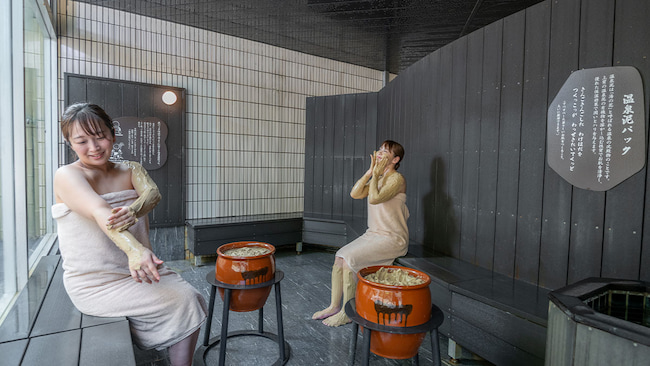 リニューアルされた露天風呂「霧乃湯」では、霧島の大自然を感じながら極上の癒し時間を。また、男女ともに利用できる泥パック「霧香」など、癒しの温泉施設が充実しています。