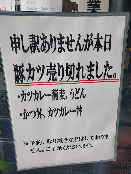 お店の人におそるおそる「カツカレーそばまだダイジョブですか」と聞いたら、「はい、ありますよぅ」と明るい声。ほっとしました。