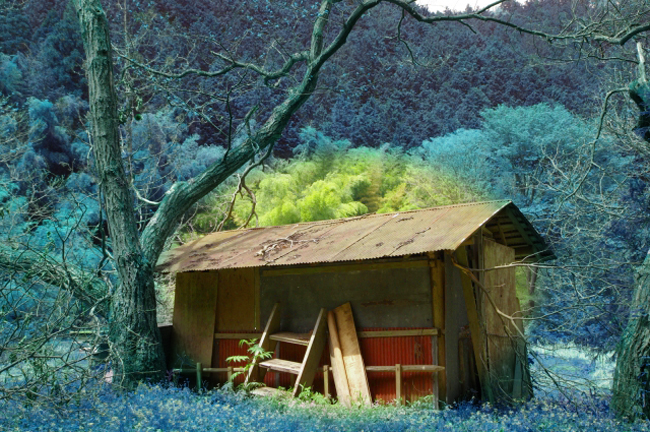 どこかで雨宿りをと探していると、幸い小さな小屋があった。