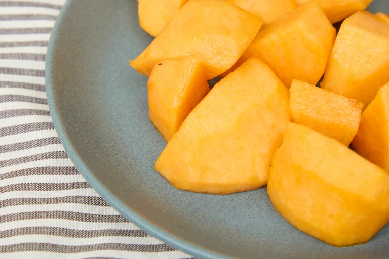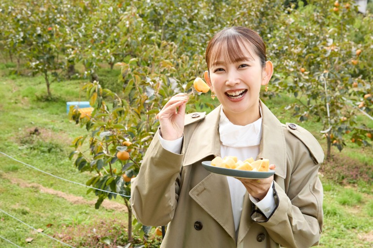日野さんが差し出してくれたのは、福岡のブランド柿「秋王」。近年、人気が高まっている品種です。