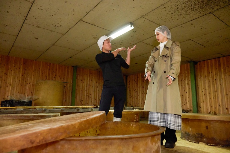 「うわ。すごい香り。酸味を感じる」「へえー!白いのが麹菌なんですね」