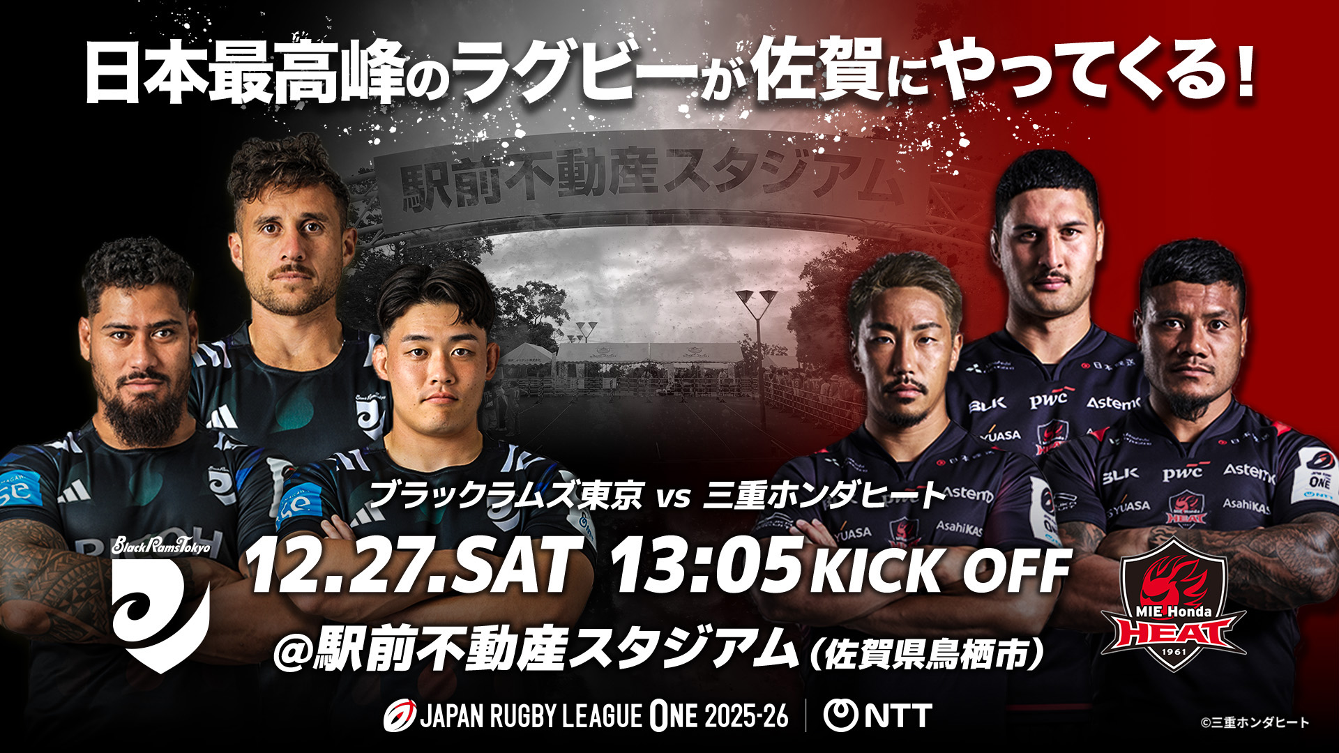 12月27日(土)佐賀県で初の「ジャパンラグビー リーグワン DIVISION 1」公式戦が駅前不動産スタジアム(佐賀県鳥栖市)で開催されます。