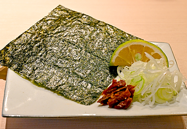 別皿で供される焼き海苔(のり)やドライトマト、柑橘(かんきつ)を加えることで最後の一口まで飽きずに楽しめます。