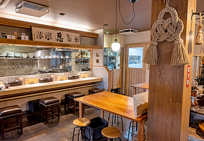 深い琥珀(こはく)色のスープに、もちもちとした食感の自家製麺。食べ進めるほどに花開くカツオの香りが心をつかむ「醤油(しょうゆ)そば」(850円〜)が名物のラーメン店です。