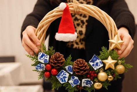 陶片を使って、世界にひとつだけのクリスマスリースを作れます。
