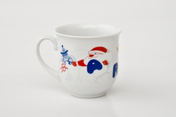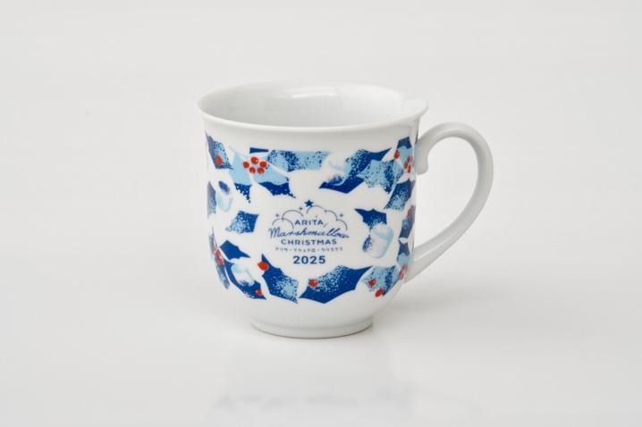 クリスマス限定の有田焼マグカップが今年も登場。有田焼をイメージした白と藍を基調にしたデザインと、佐賀大学有田セラミック分野専攻の学生によるサンタ柄の2種類を各日100個限定で販売されます。