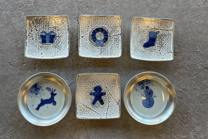 福珠窯によるクリスマスをイメージした染付銀彩のお皿を限定販売。また、オーナメントなどのクリスマス向けの雑貨類も販売されます。