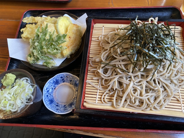 ざる蕎麦と天ぷらは1人前ずつ大きめのお盆に載ってきたのですが、義姉は蕎麦を1本だけ取ると、お盆の上に直に乗せ、膝に座らせていた自身の子どもに向かって