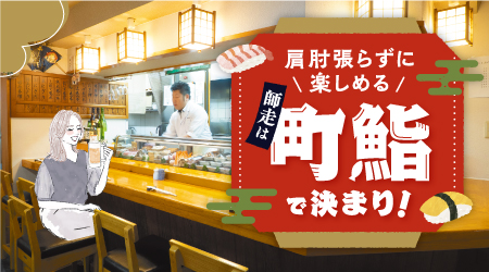回転ずしとコースのすし店の間にあるのが「町鮨」。地元密着で地元に愛されるすし屋は、価格も手頃で絶品のネタばかり。今年1年頑張ったごほうびに、「町鮨」はいかが?