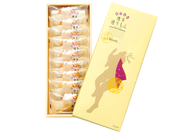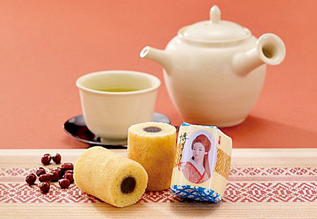 パッケージと個包装にデザインされた博多人形がトレードマーク。ほどよい甘みの小豆ようかんを、卵の素朴なおいしさが伝わるやわらかなバウムクーヘンで包んだお菓子です。バウムクーヘンにようかんの水分がなじんで、独特のしっとり感を生んでいます。1972年の発売から50年以上愛されているロングセラー商品です。