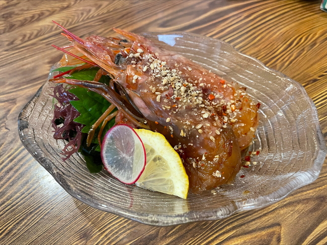 味がしっかりしみ込んだ「酔っぱらい海老」。ねっとりした口触りで、とてもおいしかったです!