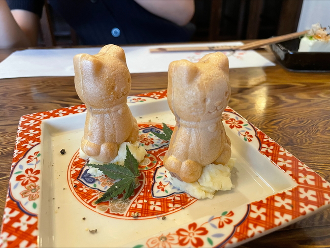 可愛い猫にはさまれている「レバーパテ最中」。メニューにも書いていましたが、ワインと合う一品です!
