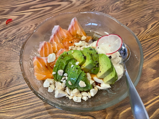 「サーモンとアボカドマスカルポーネ白和え」は、安定の組み合わせで間違いないやつです。ナッツの食感や風味が良いアクセントになっていました。