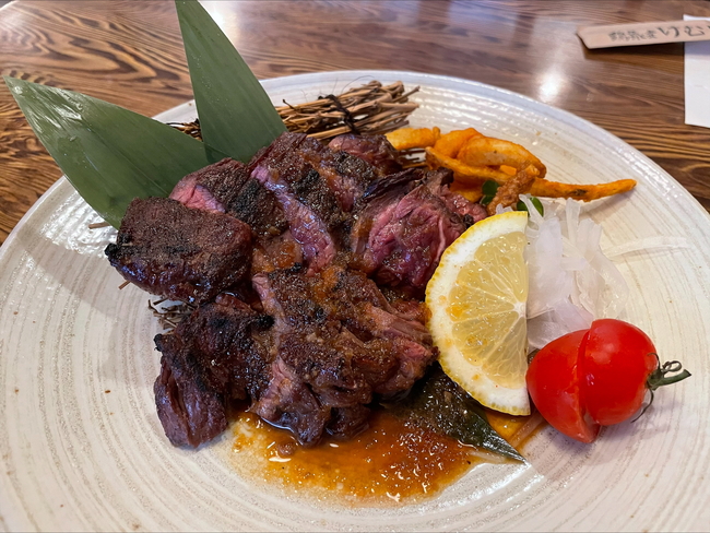 鶏料理以外にも絶品料理がたくさん…!お肉料理は、「牛サガリ網焼き」を注文しました。お肉は柔らかくてとてもジューシー。自家製ジャポネソースとの相性も抜群です。
