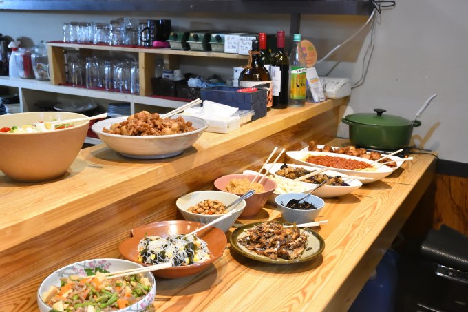 この日並んでいたのは、「からあげ」「カレー」「筑前煮」「イワシの甘露煮」「マカロニ」など、おふくろの味を思わせる料理。実はこれ、平日限定のおかず食べ放題ランチバイキングで、ご飯とみそ汁付きで750円(税込)という驚きの価格で楽しめます。