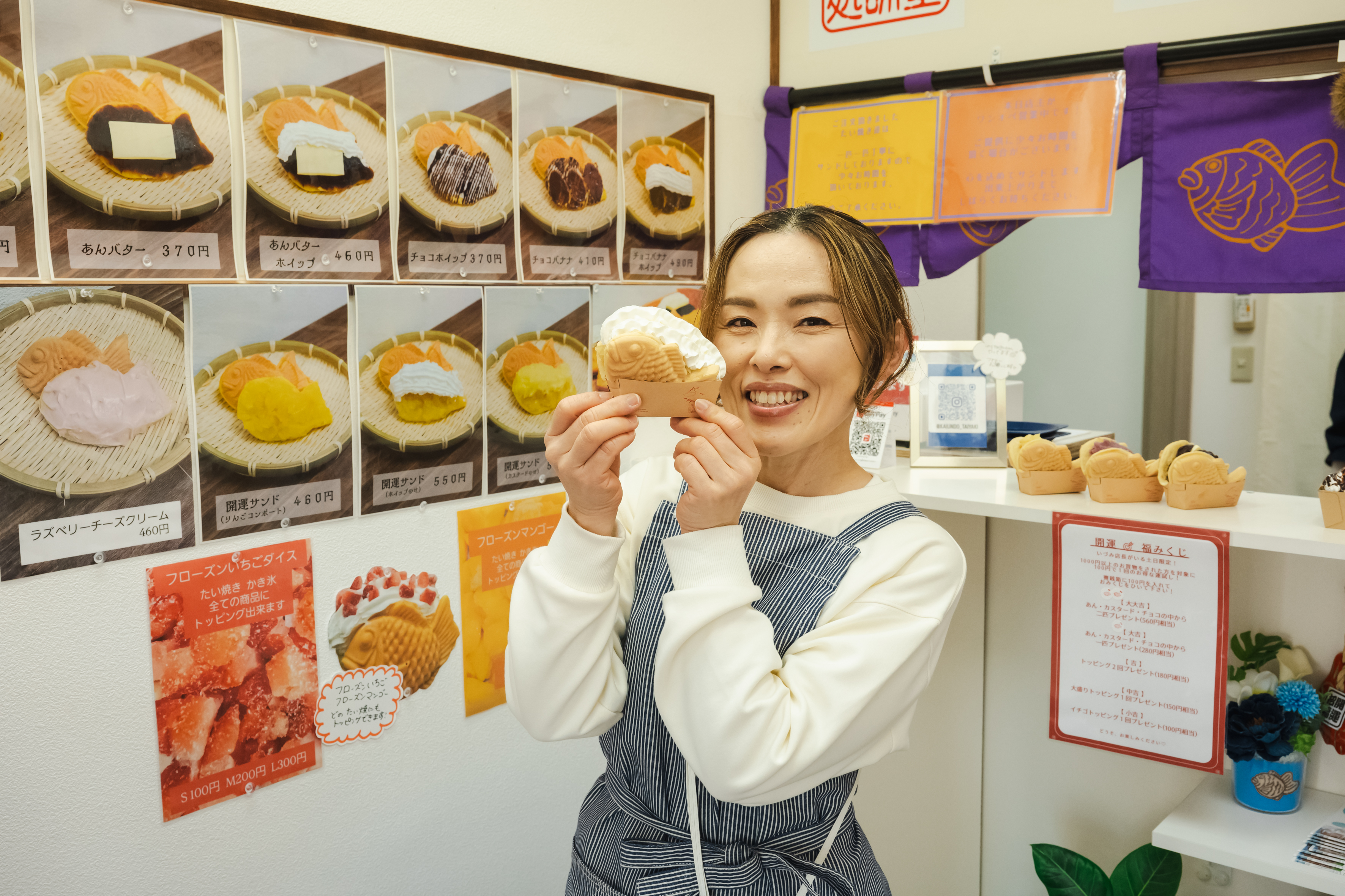 「たい焼きの値段に1,000円追加で“たいが溺(おぼ)れるホイップ沼”にもできます。見て楽しい、食べておいしいたい焼きサンドを作っていますので、気軽に来てください」と山形さん。