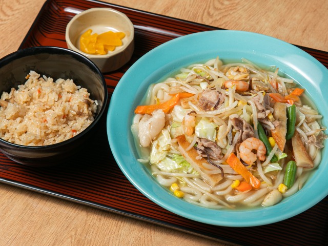ちゃんぽんうどん+かしわ飯セット(1,170円、税込)