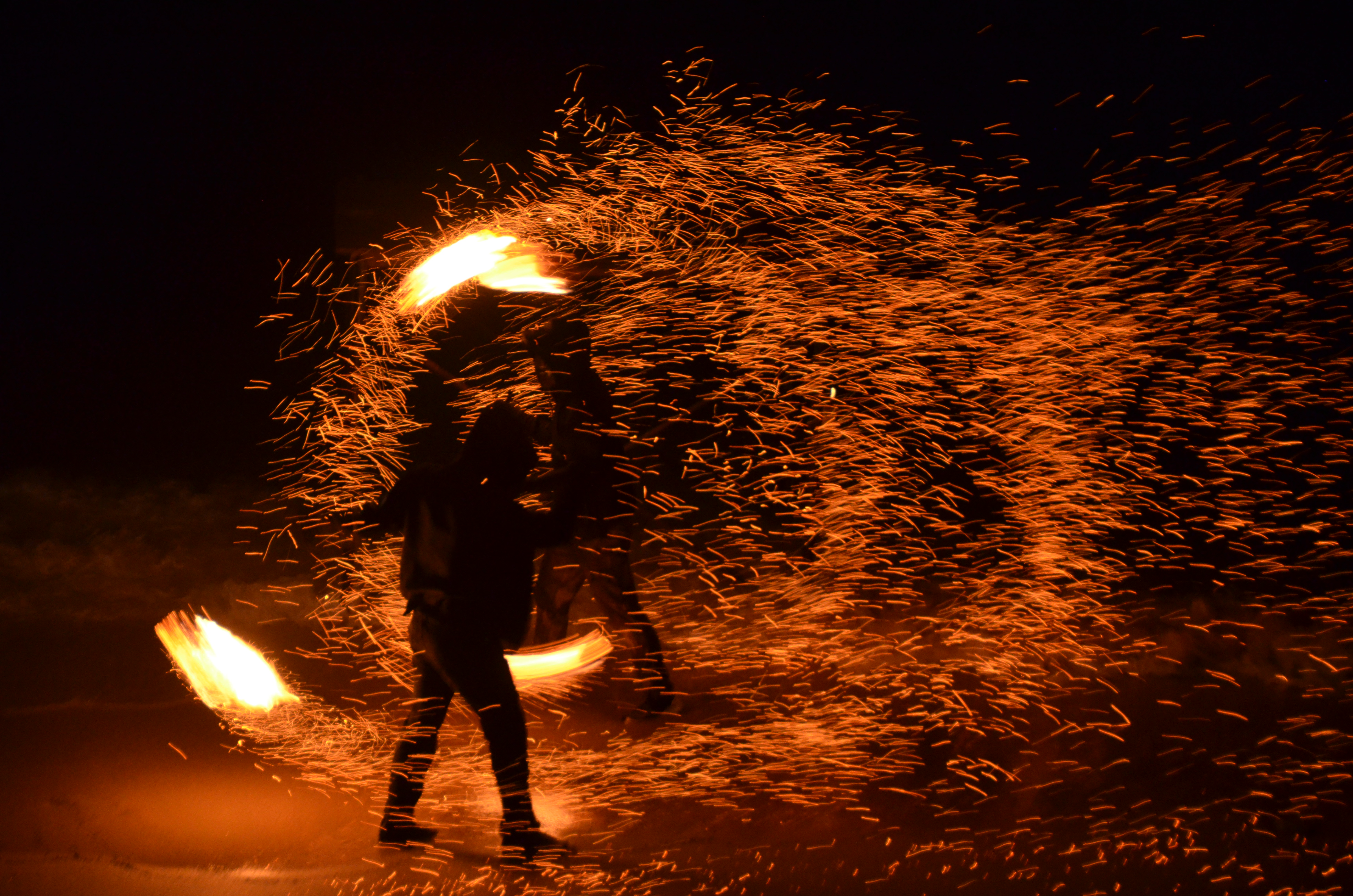 ショーでは、火の粉をまき散らす迫力満点の演目も