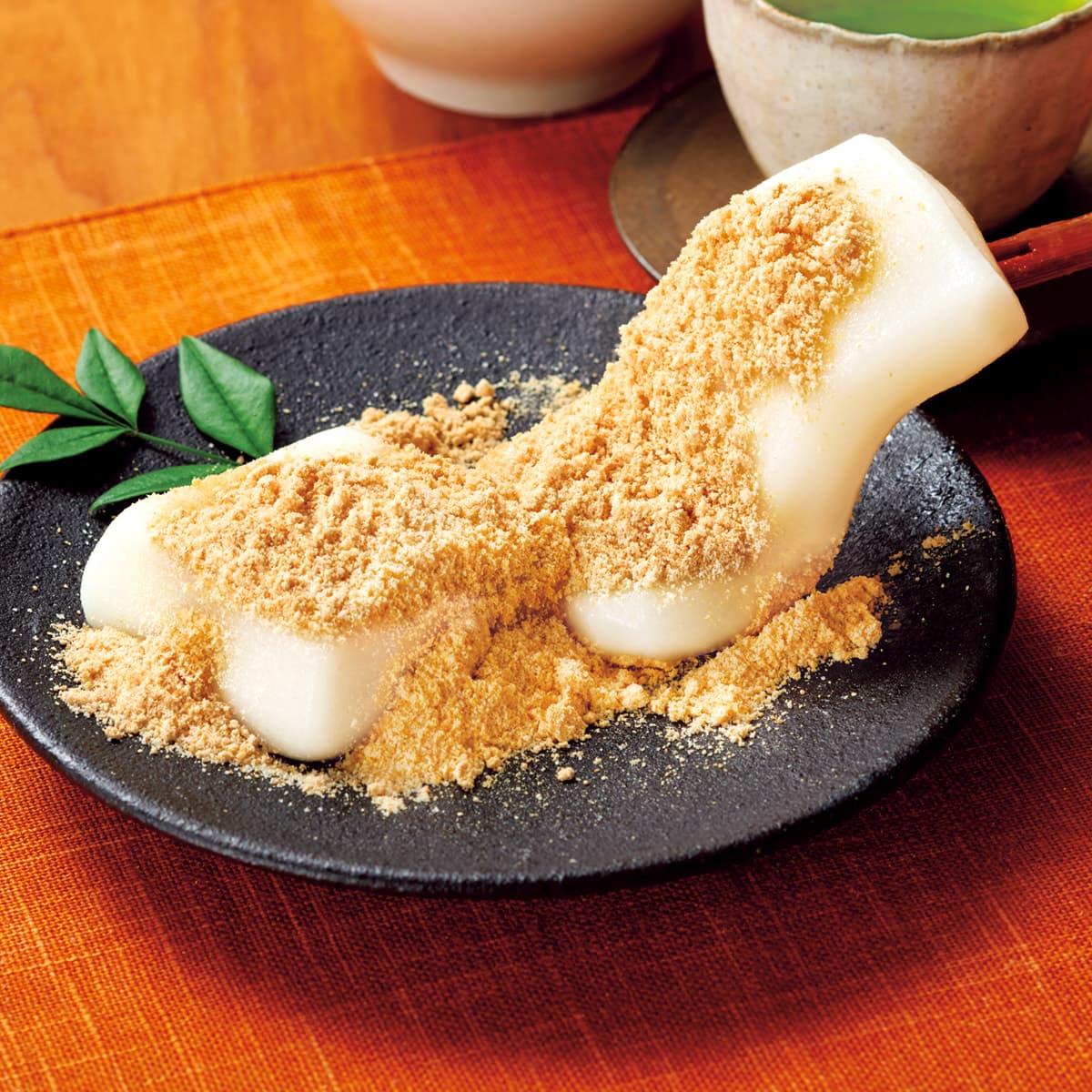 「三千円福袋」は、もち吉の人気商品に加え、上品な甘さの「きなこもち」が必ず入っています。北海道産大豆を使ったきな粉をまぶした、もっちりなめらかな餅は、もち吉ならではの味わい。約4,400円分の商品が詰まっています。