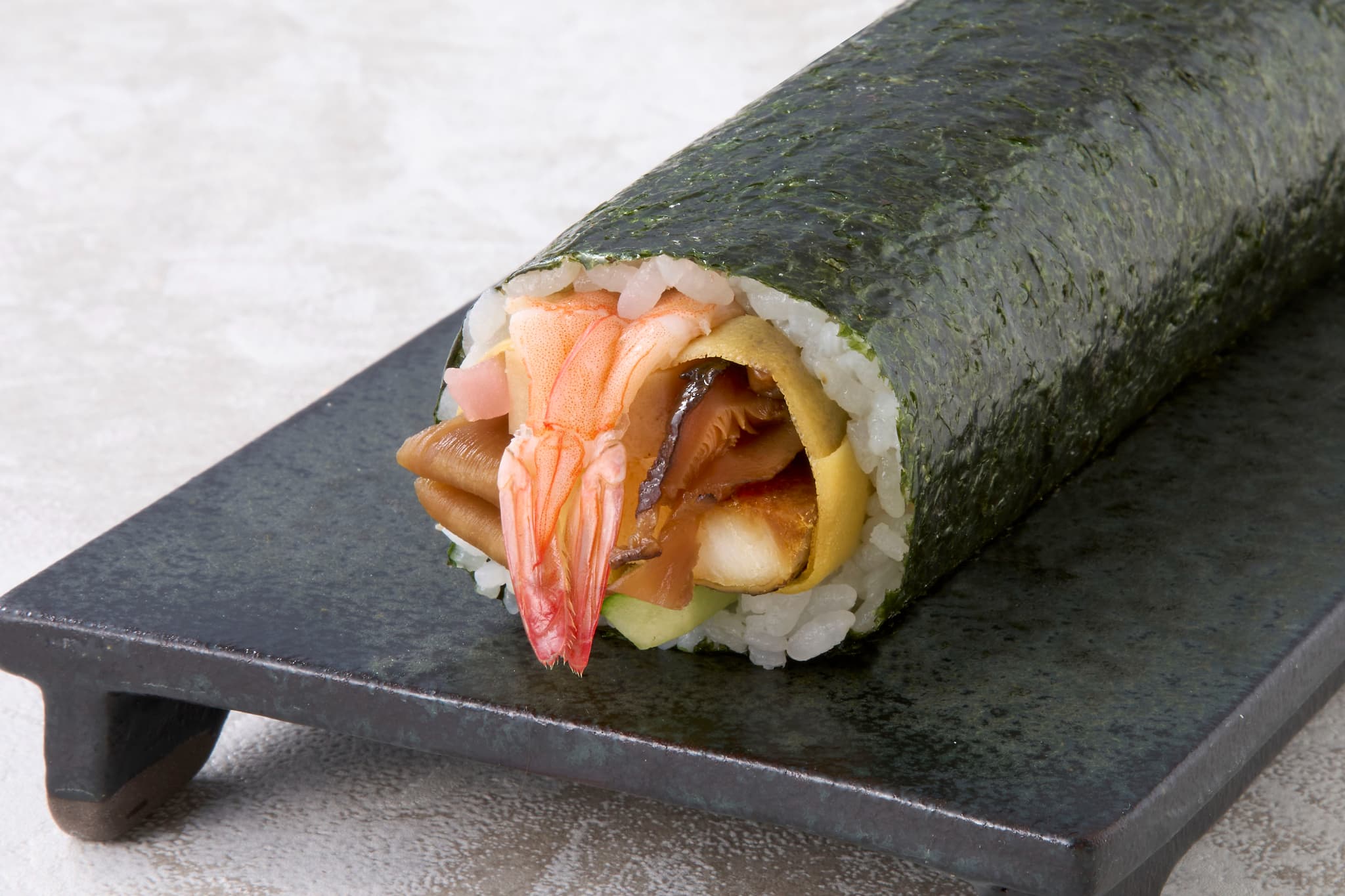 海老・穴子など12種類の具材を巻いた極太巻。ひと口ごとに異なる味わいが楽しめます。
