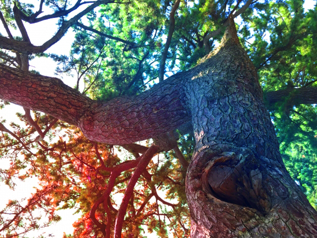 庭の築山を調べるとたしかに葉が赤くなっている松がある。