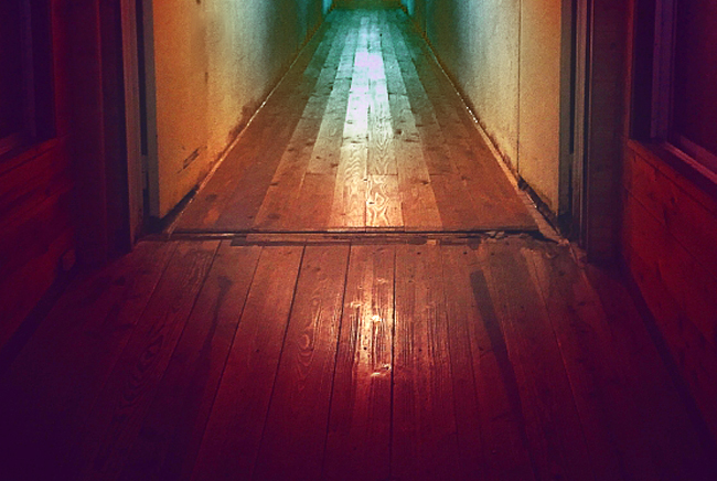 気になって眠るどころではないので部屋にとってかえし、備え付けの懐中電灯を持ってもう一度廊下を進んだ。
