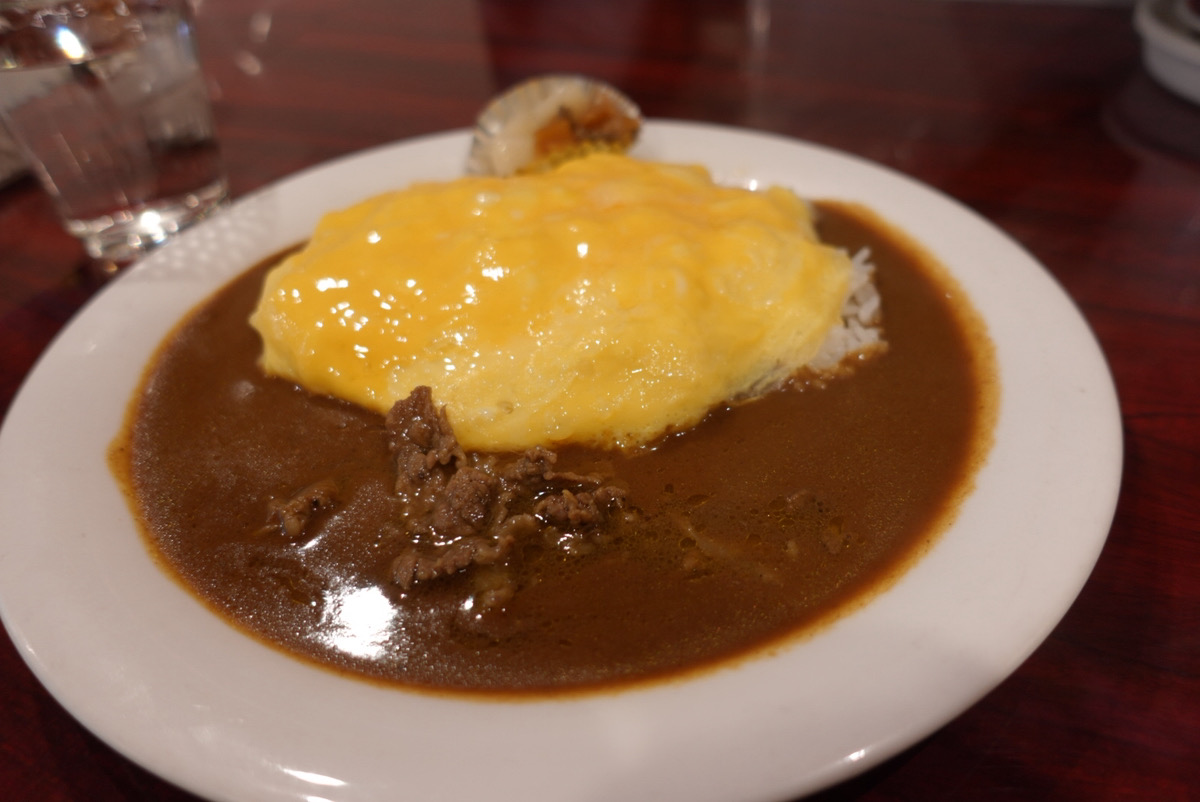 カレーの上に「卵焼き」が鎮座しており、それを崩しながら食べ進めていく。「エッグカレー」と言われると、どちらかといえば目玉焼き・生卵などが想起されるが、この薄い卵焼きのオリジナリティ、カレーとの相性の良さが、実にくせになる。