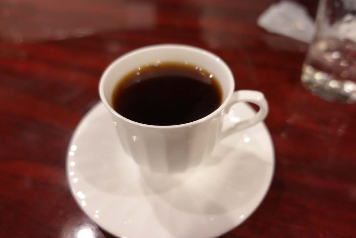 カレーを完食し、珈琲を注文、ぼーっとしながらいただく。蝶ネクタイをつけて、ネルドリップで珈琲をいれてくれるマスター。珈琲の良い香り。会話で賑わう店内ではあるが、落ち着く時間。
