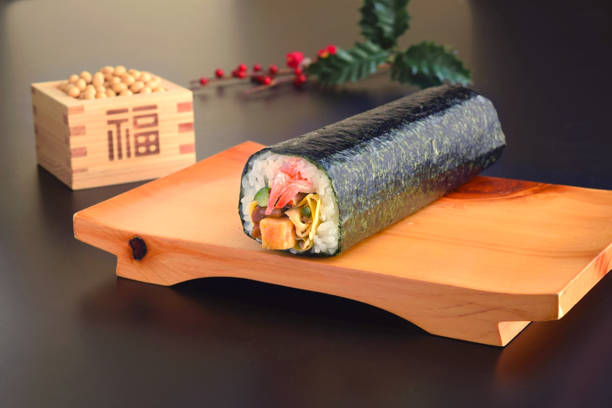 「梅の花 開運太巻」は、恵方寿司に“永続”を象徴する穴子をプラスした、開運祈願の太巻。節分にぴったりの縁起物です。
