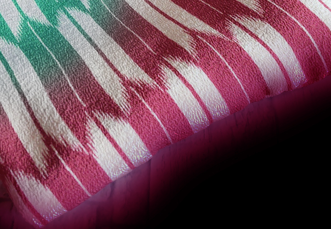 娘は目の覚めるような藤色の矢絣(やがすり)の着物を着、手には小さな巾着を大切そうに抱えている。