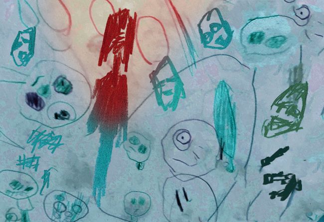 部屋の中は壁といわず襖(ふすま)といわず、子どもの落書きで埋め尽くされていた。