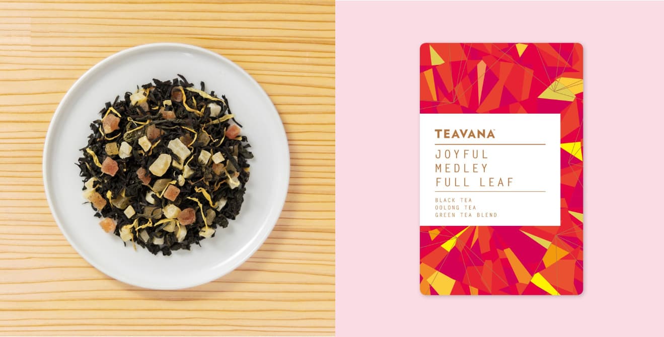 ジョイフルメドレーは、2種類のブラックティー、ウーロン茶、ジャスミン香るグリーンティーをブレンドした奥深い味わいが魅力。その華やかな風味にホワイトピーチとホワイトモカフレーバーシロップを合わせることで、上質感あふれるティービバレッジが誕生しました。