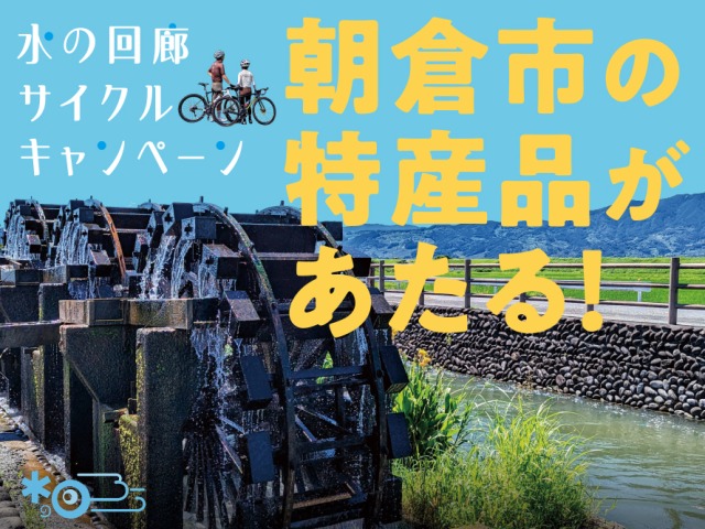 マップ完成を記念して開催されているのが、「あさくら水の回廊を周るサイクルマップキャンペーン」。水の回廊やサイクリングにまつわる写真や動画を撮影し、Instagramに投稿すると、朝倉市の素敵な特産品が抽選で10名に当たります!