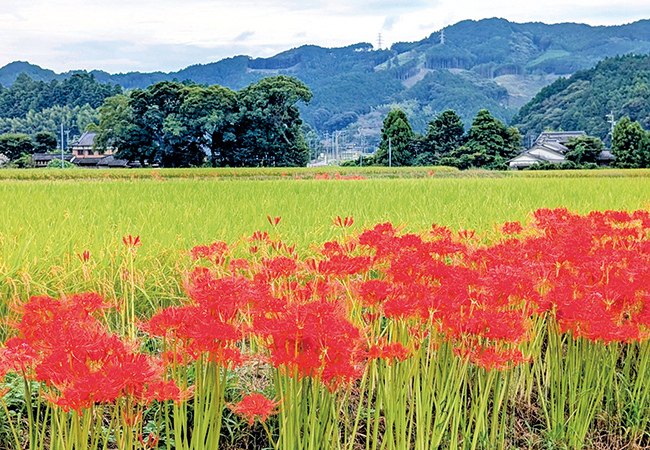 のんびりと田畑や集落を抜ける小石原川沿いの道は、穏やかな風景が魅力。杉の馬場や秋月城跡付近は、ゆっくりと散策するのもおすすめです。