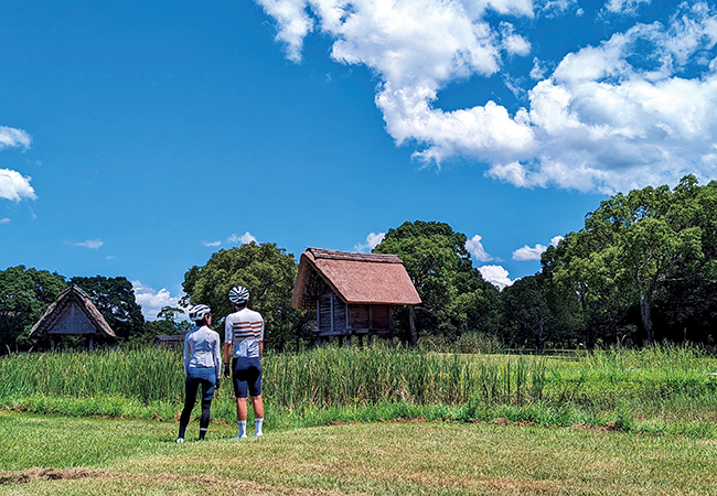 平塚川添遺跡公園は、園内の周遊舗装路を自転車で通行することができます。佐田川沿いなど、サイクリングにぴったりな、のどかな小道が続きます。