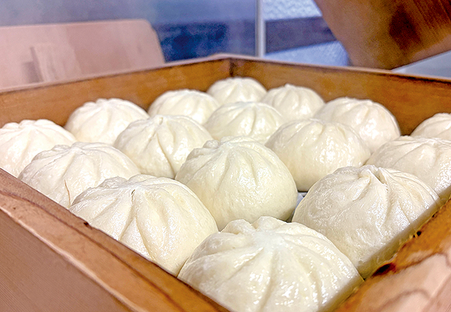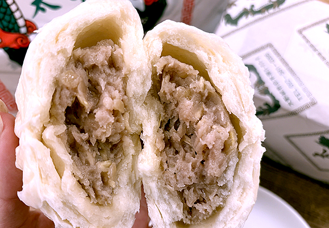 あんがぎっしりの「豚まん」。ぜひ熱々で味わって