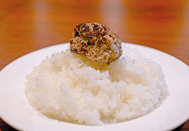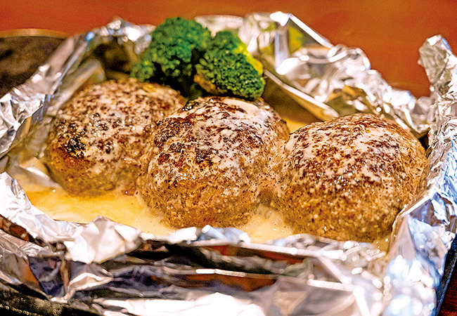 看板の「Jumboハンバーグ」(210g・1,320円〜)は塩・こしょうを基本としたシンプルな味付け。ミンチに加える「つなぎ」を最小限に抑えることで、上質な和牛のうまみをストレートに引き出しています。