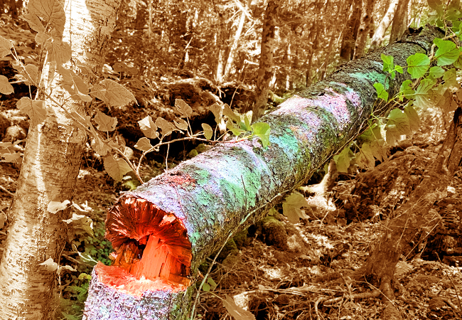 蛇にしては寸詰まり、三尺(約90cm)ほどの生き物が、倒木と岩の隙間にがっちりと挟まり身動きが取れなくなっていた。