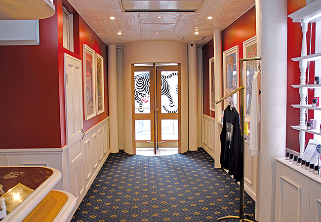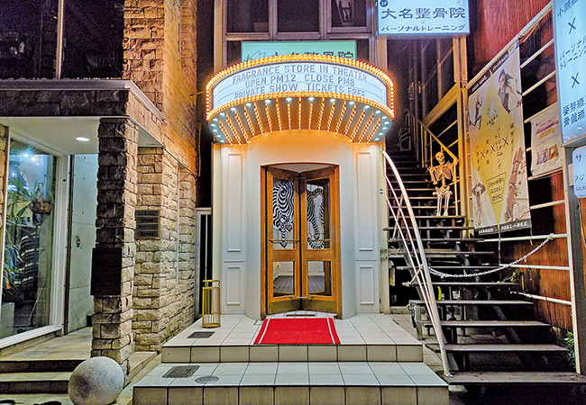 ステンドグラスの回転扉を押すと、海外の映画館のような空間が! 20種類のフレーバーからファブリックミストを作るサービス「Flavor Shake®」が人気のお店です。フレーバーを二つから三つ選び、調香、色付け。30分ほどで自分だけの香りが完成します。“推し“をイメージして制作する人も。前日まではWeb、当日は電話で予約を。