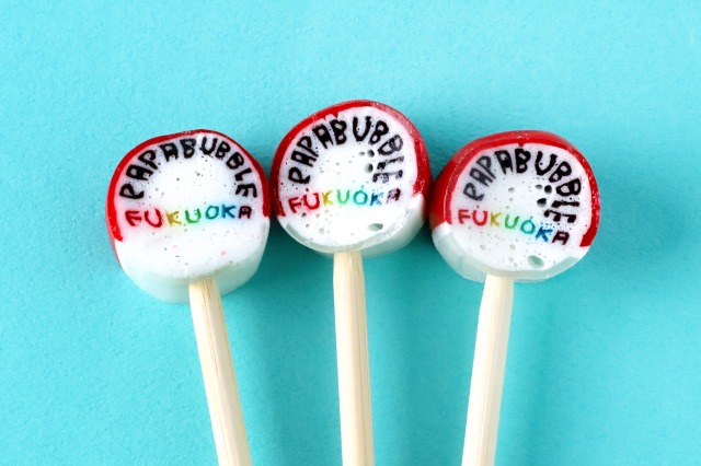 紅白を基調に、「PAPABUBBLE」とレインボーカラーの「FUKUOKA」の文字を組み込んだ特別仕様で、ここでしか手に入らない一品です。