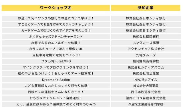 企業や教育機関による多彩なワークショップも見逃せません。エネルギー、金融、AI、プログラミング、食、環境まで、社会とつながる学びが体験できます。
