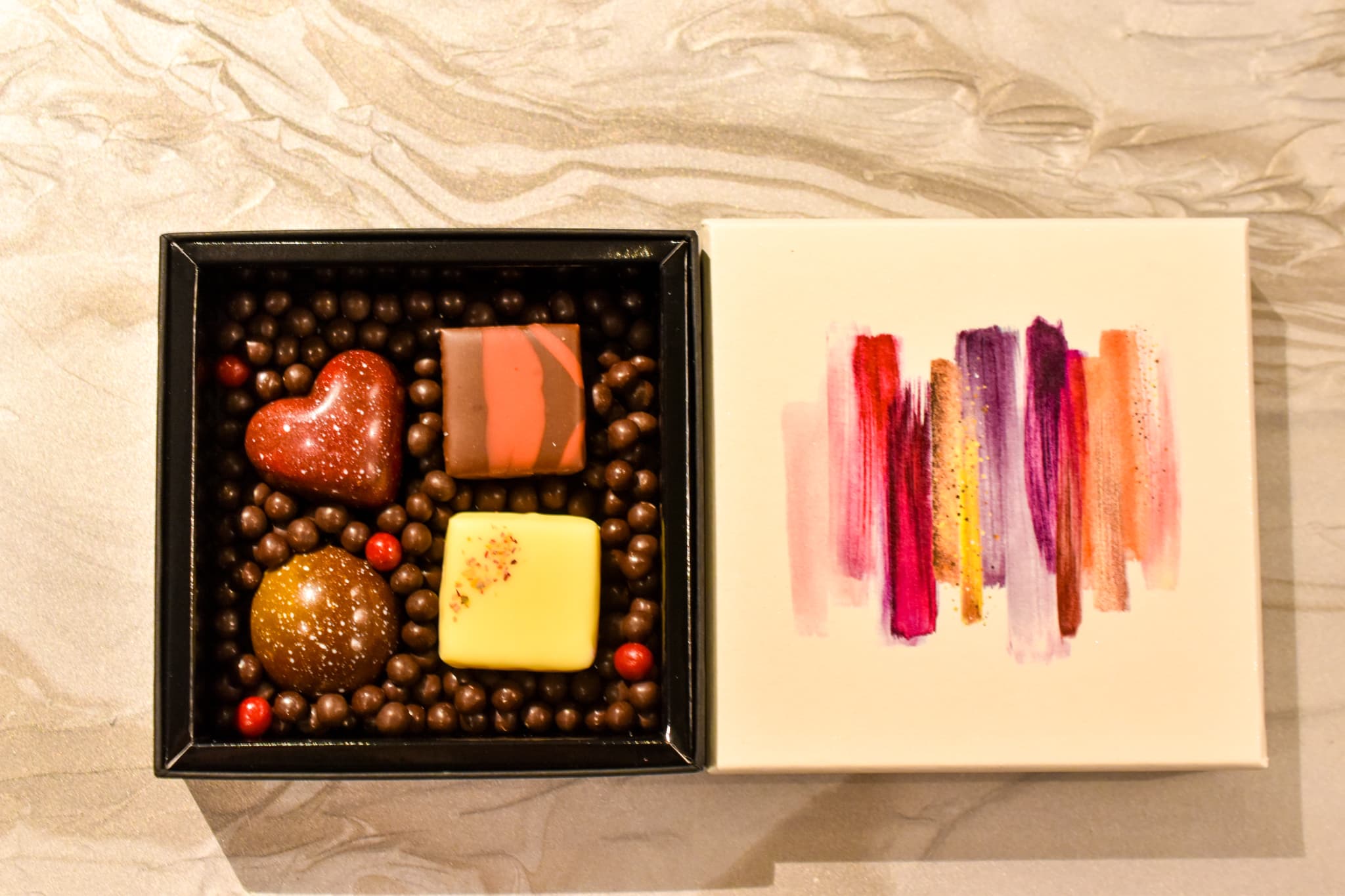 4個入りのボンボンショコラには、福岡の魅力を表現した4種類のフレーバーが揃います。