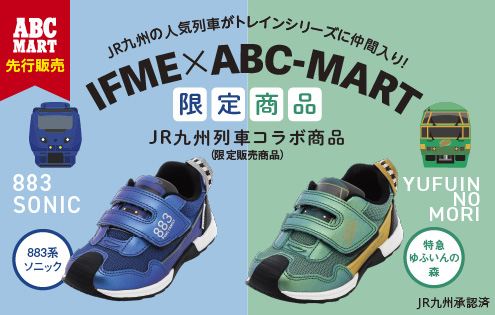 IFMEとABCマートがコラボ!JR九州の特急列車「ソニック」と「ゆふいんの森」デザインのキッズスニーカーが登場
