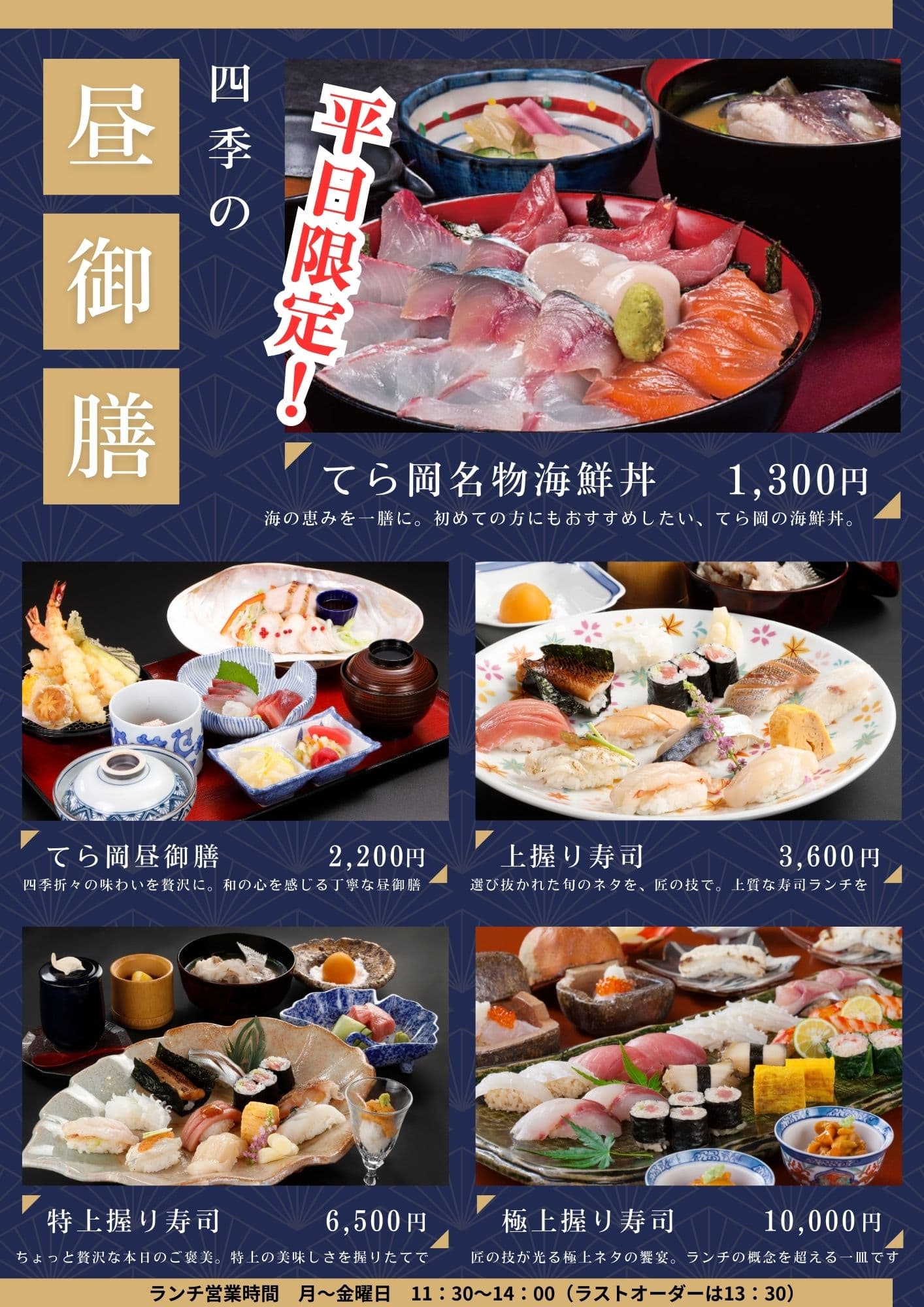 昔から愛されてきた“てら岡の味”を、平日のランチ時間に味わってみてはいかがでしょうか。