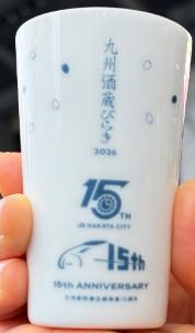 毎年好評のオリジナルぐい吞み(800円)は、今年も数量限定で販売。今年のデザインは「JR博多シティ開業15周年・九州新幹線全線開業15周年×九州酒蔵びらき」の記念仕様です。各日販売数が限られており、このデザインが手に入るのは今年だけ!