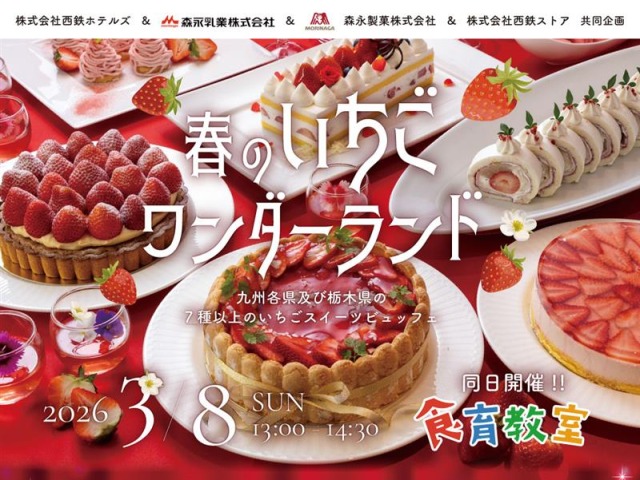 九州各県と“いちご王国”栃木県のブランドいちごが一堂に会する、夢のようなスイーツイベント!ソラリア西鉄ホテル福岡(福岡市中央区天神)で3月8日(日)、いちごのスイーツビュッフェ「春のいちごワンダーランド」が1日限定で開催されます。