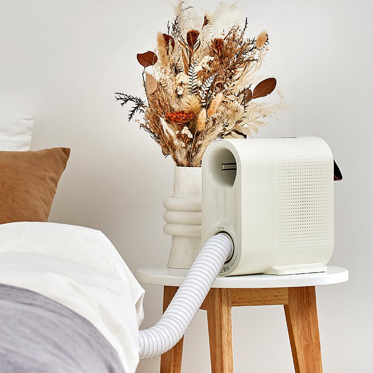 布団を外に干せない季節に頼れるのが「コンパクトふとん乾燥機」。一般的な布団乾燥機より+10度の高温風を送り、寝具を心地よい状態に整えてくれます。用途の広さも支持されています。